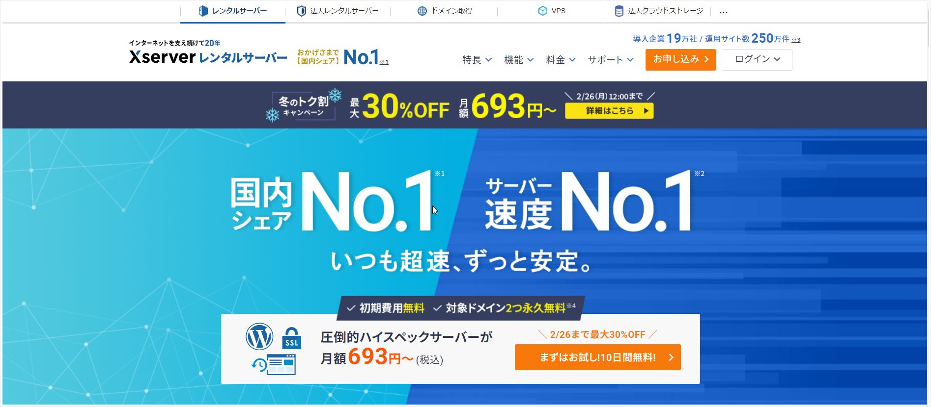 ドメイン(表札)とサーバー(情報の倉庫)を契約しています。